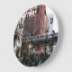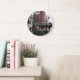Decorate a living space with this modern style wall clock with black numerals that features a photo image of the elevated. commuter loop train in downtown Chicago, Illinois. Select your clock style along with hand colour.