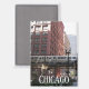 Rectangular fridge magnet that features a photo image of downtown Chicago and its famous, elevated, commuter loop train. Makes a great travel souvenir!