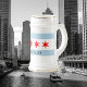 Chicago flag beer stein with custom text. Personalize with custom text.