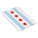 Design based on Chicago's flag with white, light blue stripes and red stars.
