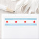 Send out mail with these colourful and bold Chicago themed return address labels featuring the Chicago flag with four red 6-pointed stars and two light blue stripes. The design features a printed font for the name and address, both in a complimentary white.