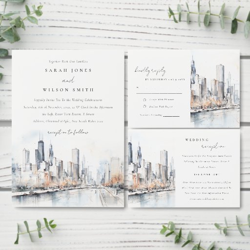 Chicago Illinois Scape Watercolor WeddingDesigned by YellowFeb Studio