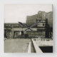 This is a high dpi scan of an original photograph which we have turned into a watercolor view. It is a view of the merchandise mart in Chicago and a trolley train passing overhead on the rails. A work crew is in the process of changing the bridge pass so that there is no column in the roadway. A great shot of vintage Chicago 1950's.