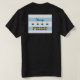 This Chicago PRIDE design combines the elements of the Chicago flag with the LBGTQ rainbow colours. The word Chicago is in a blue script type font. The four stars and the word "PRIDE" are in the rainbow colours. The back of the shirt has a large version of the design and on the front of the shirt there is a smaller version of the logo over the left pocket area.