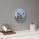 The clock did not take as long to arrive as I thought it might and was extremely well packaged. I didn't do the measurements so I didn't realize it is a little smaller than the average clock but that does not matter (just make sure you check if that's important to you).It is really nifty! It seems very solid and well made not flimsy at all. It has been going well and has kept good time in its few weeks on my wall. Nice product. Gets noticed too! Nicer in real life than the picture but true to the picture