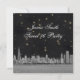 Customisable Invitations and accessories with a stylised black & white etched look view of the Chicago Illinois skyline. They also feature a black starry night background with gold and white stars.