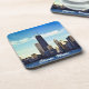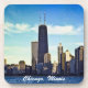 Drink coaster set, beautiful blue sky Chicago skyline.