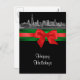 Chicago Etched Look 01 Red & Green Ribbon Invitation Suite - Christmas Card / Winter Holiday Postcard Black Background