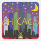 Artistic rendition of Chicago's signature skyscrapers and Navy Pier.