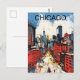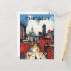 Chicago Skyline Painting – Windy City Urban Art Postcard