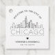 Enhance your wedding welcome packages or event party favours with a custom set of welcome gift favour tags! These elegant yet minimal-style favour tags are tailored for a wedding taking place in the wonderful city of Chicago, Illinois. They feature a modern deco skyline with the name of the city integrated underneath. All elements of the design including the text elements are unlocked and customisable by using the edit function.