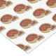 Tablecloth print features an original marker illustration of a Chicago-style deep dish pepperoni pizza.