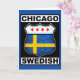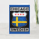 Chicago Swedish design, in the style of a cool American road route sign. The text Chicago Swedish is along the top and bottom, with the flag of the City of Chicago and the flag of Sweden inside the route sign. Great for Chicagoans of Swedish descent, and for ex-pats in the Windy City.