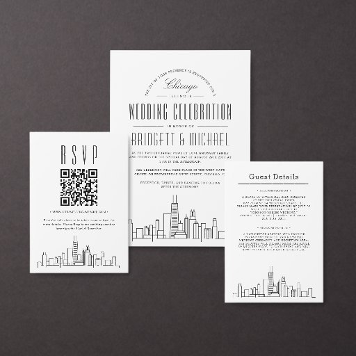 Make an impression and excite your future wedding guests who will travel from far and wide for your wedding ceremony! This fun and formal invitation puts a highlight on the wonderful destination city of Chicago, Illinois.