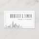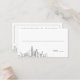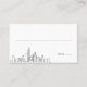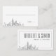 A set of unique wedding escort cards for a marriage taking place in the beautiful city of Chicago, Illinois. They feature a stylised skyline of the city on one side, with a spot for the person's name to be written in. On the reverse side is a place for the wedding couple's names and wedding date with the skyline also presented in the bottom corner.