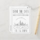 A unique wedding save-the-date postcard for a marriage taking place in the beautiful city of Chicago. This invitation features a stylised illustration of the city's unique skyline with its name underneath. This is followed by your wedding day information in a matching open lined style. On the reverse side of the post is your address information. All individual elements of the invite card are unlocked so feel free to change any details necessary such as font sizes, styles and more by using the customisation function. You can add a photo to the reverse side and add a black and white filter to it. Have fun being creative and making it your own!