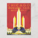 A Century of Progress International Exposition was the name of a World's Fair held in Chicago from 1933 to 1934 to celebrate the city's centennial. The theme of the fair was technological innovation. Its motto was "Science Finds, Industry Applies, Man Adapts" and its architectural symbol was the Sky Ride, a transporter bridge perpendicular to the shore on which one could ride from one side of the fair to the other.