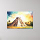 Canvas with Chichen Itza, Mexico. Beautiful painted El Castillo Pyramid, ruins of Maya Empire.