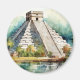 Magnet with Chichen Itza, Mexico. Beautiful painted El Castillo Pyramid, ruins of Maya Empire.