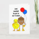 A cute yellow chick and an acorn nut holding balloons is a funny design for birthdays. Text may be changed.