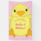 Cute chick baby shower design is great for a spring baby shower with a farm theme! The cute cartoon chicken baby is great for a baby girl on the way with pink background!