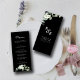 Set the stage for a delicious celebration with this minimalist wedding menu. Featuring a sleek black and white design accented by delicate eucalyptus illustrations, this menu adds a touch of nature and timeless elegance to your wedding tables.