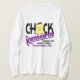 Fibromyalgia warriors, fight back chick-style while making it known that fibromyalgia may have interrupted your life TEMPORARILY but you will fight it and you will win with our mad, but absolutely adorable, chick with an oversized head and purple bow. This light-humoured design is sure to bring a smile to a serious cause while you express your empowerment over fibromyalgia and share a message of fibromyalgia awareness. We proudly donate to health, animal, and Darfur charities.
