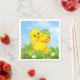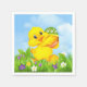 Package of 50 white paper cocktail napkins with an image of an adorable chick carrying a decorated easter egg through green grass and purple, white and yellow flowers on a clear spring day. See matching square plastic and square paper coasters. See the entire Easter Napkin collection under the HOME category in the HOLIDAYS section.