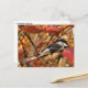 Chickadee Bird in Pink and Red Autumn Leaves Postcard