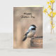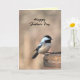 This Father's Day card features a tiny chickadee perched on the edge of the feeder. Another chickadee is inside. Text on the front and inside can be customised to suit your needs.