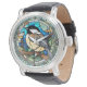 Chickadee Faux Stained Glass Great Tit Bird Clock Watch