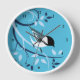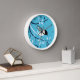 Decorative bird clocks of Black Capped Chickadee perched on stylised branches. Background can be customised to different colour