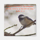 A cheery little chickadee sits in a tree and calls his name: Chick-a-dee-dee-dee. Message: "I know every bird in the mountains, and the creatures of the field are mine." Psalm 50:11