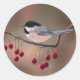 CHICKADEE & RED BERRIES by SHARON SHARPE Classic Round Sticker