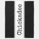 This happy feathered friend design features "Chickadee" written in large sweet typography inside a white wide centre stripe highlighted with soft grey pinstripes. The background stripes colour is black. Make It Your Own: Both the centre stripe colour and the background colour of this design can be customised/changed by editing the design. The text can also be personalised.
