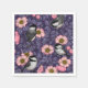 Chickadees in the wild rose in pink and violet napkin