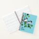 A pair of chickadees perched on a tree branch with a blue background, printed text on notebook cover can be changed and personalised