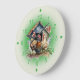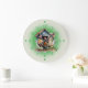 A clock face in green numbers finishes the design.