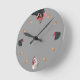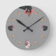 A frivolous clock for poultry fans with four chicken portraits - two matching black hens heads left and right, a larger black hen looking down from the top, and a white sussex hen at the bottom. The intermediate hours are small eggs. A bit of humour for the kitchen :) This version is with a dark grey background which can be changed using the customise button and edit.