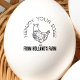 An original, illustrated, personalized egg stamper for your egg business! Customers will love the hen pun, "Henjoy your eggs"! Set yourself apart with these funny but classy chicken business stamps and stamp your eggs with cute hen art sure to make your customers smile! The decorative hen design features an original drawing of a plucky hen with her head held high and proud. Stylish, curved text creates a logo effect while you can customize the bold print at the bottom by adding your own farm business name!