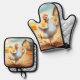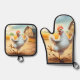 Chicken Dancing In Barnyard Oven Mitt & Pot Holder Set