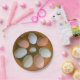 This paper plate features eggs of different colours in a flower design. Great for parties and picnics.