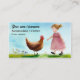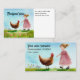 Small Chicken farm card with small child and chicken in flowy watercolor style.