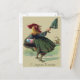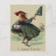 This spring send someone an Easter greeting! This vintage print depicts a hen shoo-ing an Easter bunny away from her Easter basket full of coloured Easter eggs with her umbrella.