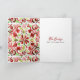 Illustration of a chicken wearing a santa hat. Border and reverse side are red and green watercolor floral tile pattern design. Personalise with your family photo on front. Personalise the text inside.