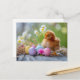 Chicken stands beside an Easter nest with eggs Postcard