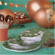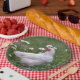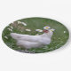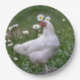 These paper plates feature a pretty white chicken posing on a wooden mushroom with white daisies in the background. Sure to please any chicken lover!