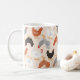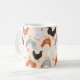 Farm animals, country chickens and roosters coffee mug. Fun chicken pattern on light beige background, french country design.