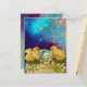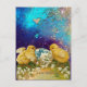CHICKENS, SNOWDROPS AND EASTER EGG WITH BLUE BOW HOLIDAY POSTCARD