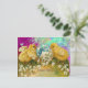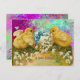 CHICKENS, SNOWDROPS AND EASTER EGG WITH BLUE BOW HOLIDAY POSTCARD